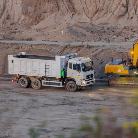 Flota propia de camiones con zorra, cazamba y chata porta maquinaria. Traslado de materiales y equipos a toda la región.